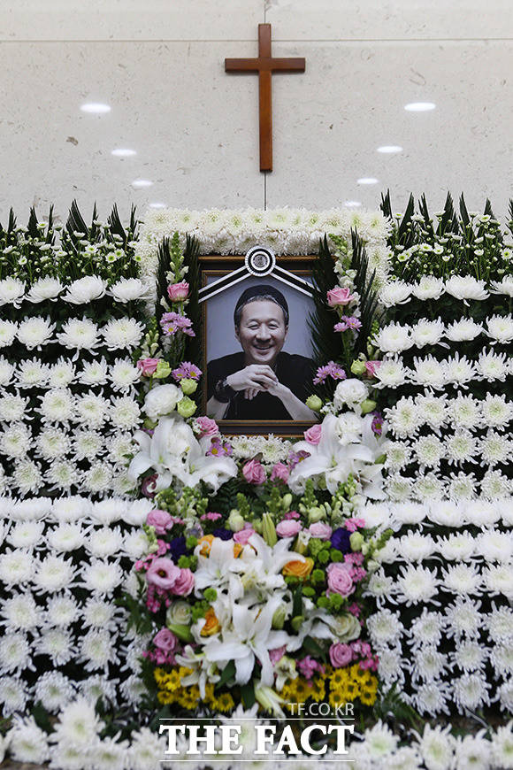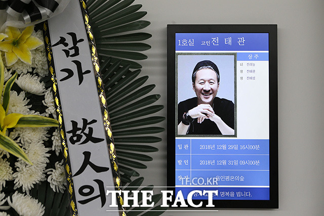 [더팩트ㅣ사진공동취재단] 봄여름가을겨울의 드러머 전태관이 향년 56세 나이로 별세했다. 28일 오전 고인의 빈소가 차려진 서울 송파구 올림픽로 서울아산병원 장례식장 빈소 영정사진에는 고인이 미소를 짓고 있다.
