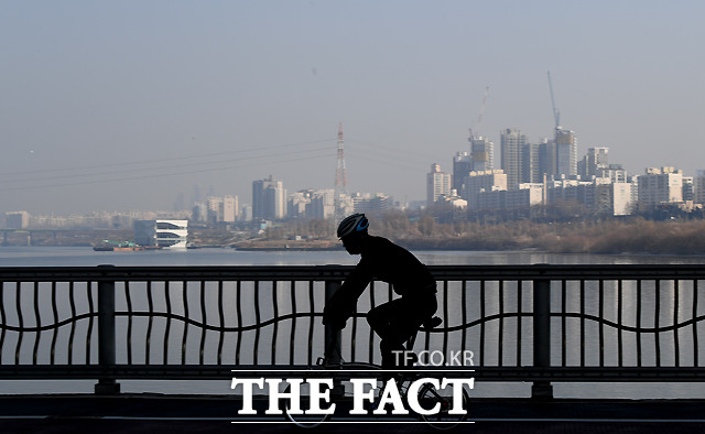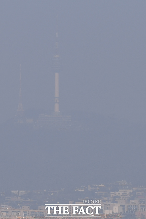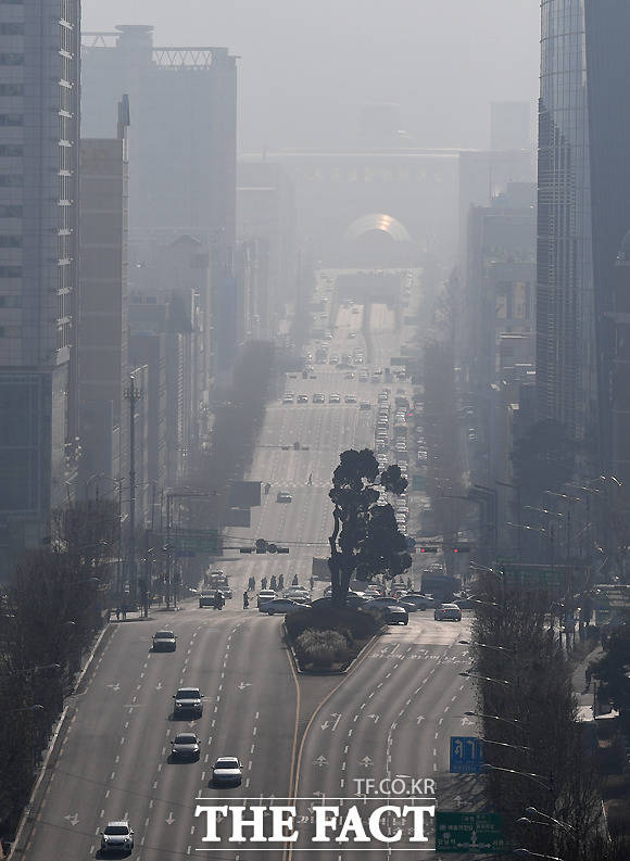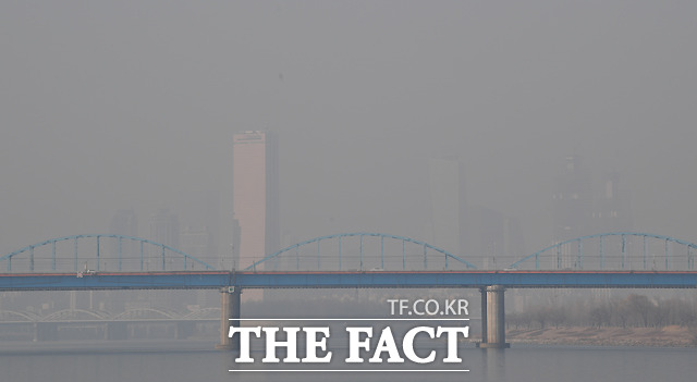 [더팩트ㅣ이새롬 기자] 전국 대부분 지역에서 초미세먼지 농도 '나쁨' 수준을 보이며 수도권에 올해 첫 미세먼지 비상저감조치가 시행된 13일 오전 서울 서초동에서 바라본 도심이 뿌옇게 보이고 있다.