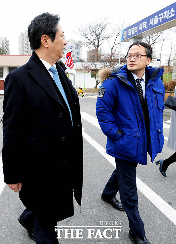 김경수 지사 접견을 위해 구치소를 찾은 박주민 더불어민주당 의원 |
