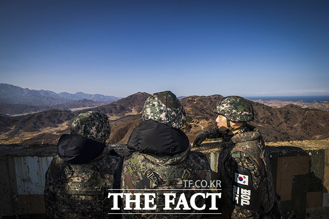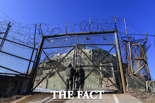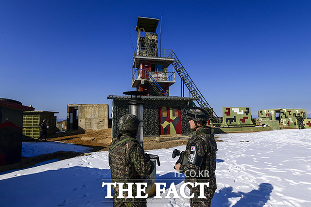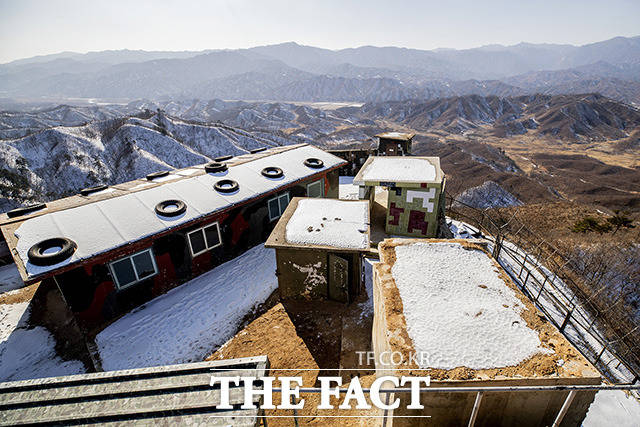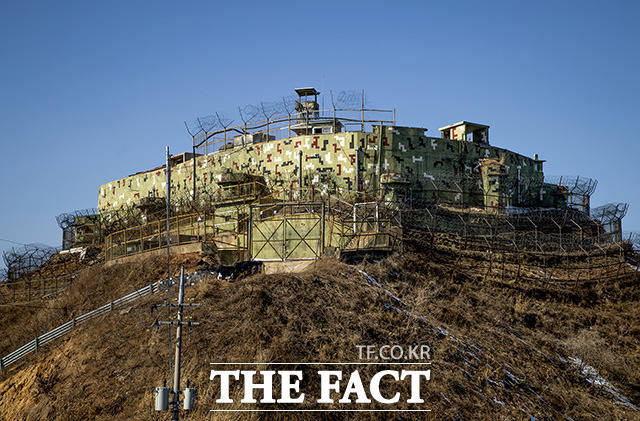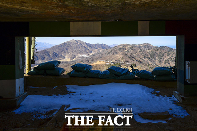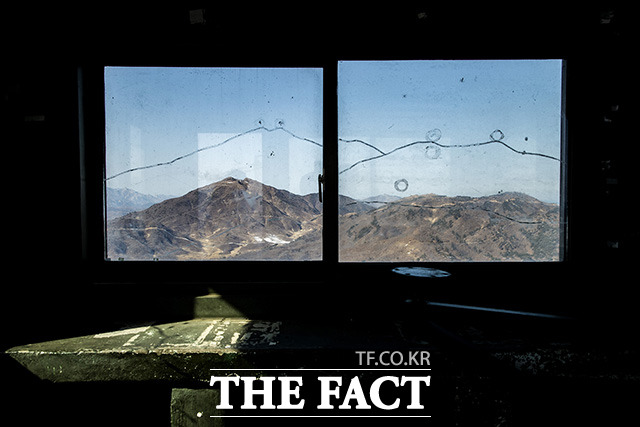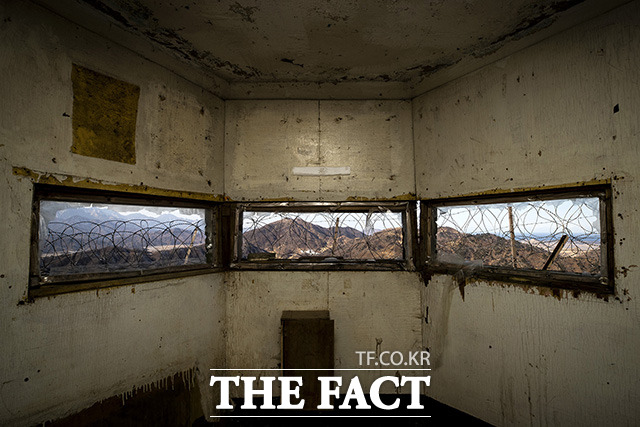 [더팩트ㅣ고성=사진공동취재단] 지난 13일 '9.19 남북 군사합의'에 따른 비무장지대(DMZ) 내 시범 철수 감시초소(GP) 가운데 역사적 가치를 고려해 원형을 보존하기로 한 강원도 고성 GP가 언론에 공개되고 있다.