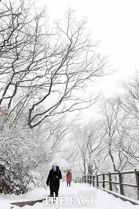 오랜만에 쌓인 눈을 구경하러 남산을 찾은 시민들