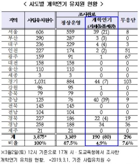 2일 교육부와 각 시·도교육청 집계에 따르면, 이날까지 서울에서만 39곳, 경기 44곳, 충남 40곳 등 전국에서 226개 사립유치원이 오는 4일 또는 5일로 예정된 개학을 연기하겠다고 밝혔다.