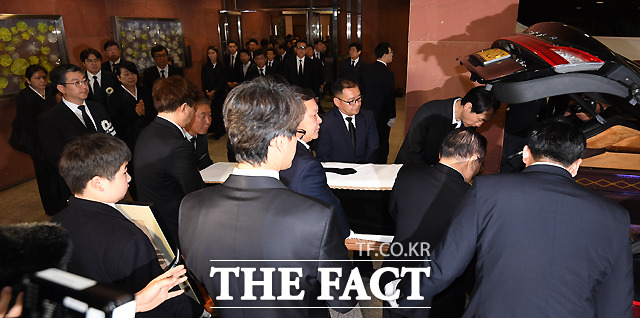 [더팩트ㅣ이새롬 기자] 김대중 전 대통령의 장남 고(故) 김홍일 전 민주당 의원의 발인식이 23일 오전 7시 서울 신촌 세브란스병원 장례식장에서 엄수되고 있다.