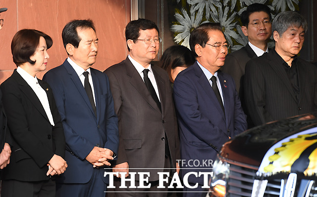 고인의 마지막 길을 배웅하는 설훈(왼쪽), 추미애 더불어민주당 의원 |