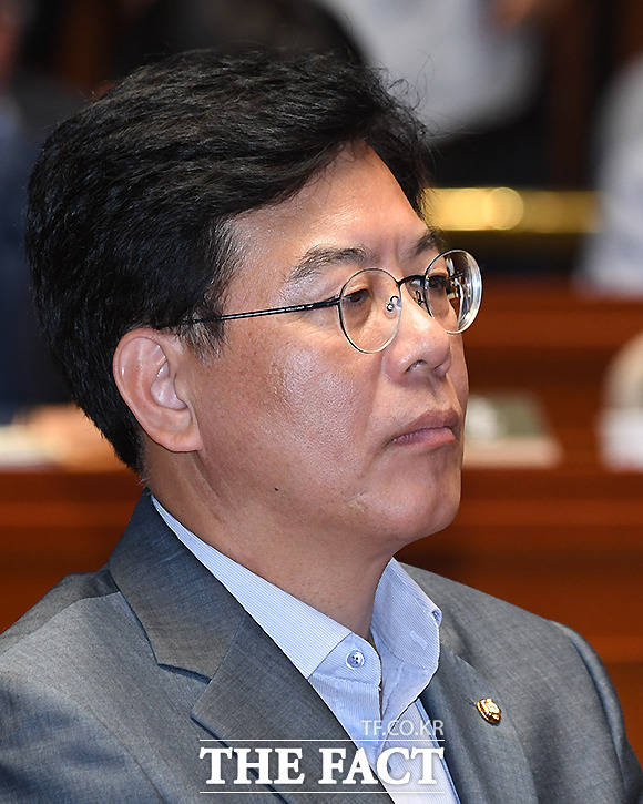 송언석 자유한국당 의원이 2일 오후 서울 여의도 국회에서 열린 자유한국당 의원총회에 참석해 눈을 감은 채 고심하고 있다. /국회=이새롬 기자 |