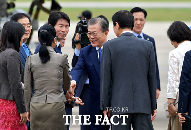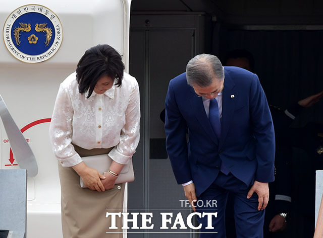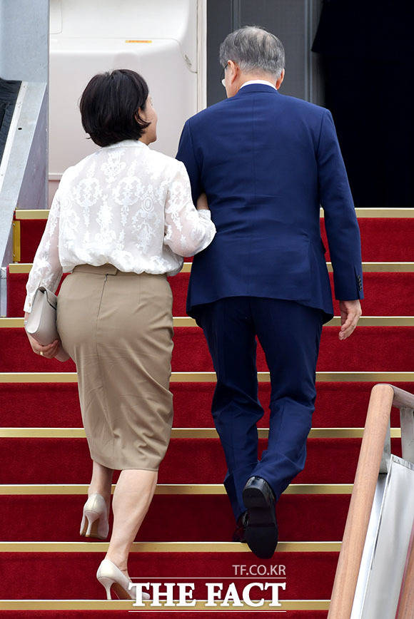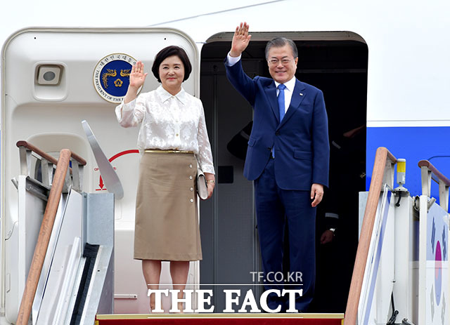 [더팩트ㅣ서울공항=이덕인 기자] 문재인 대통령과 김정숙 여사(왼쪽)가 태국·미얀마·라오스 등 동남아 3개국 순방을 위해 1일 오후 경기도 성남 서울공항에서 출국하며 손을 흔들고 있다. 문 대통령은 이날 출국해 5박6일간 태국·미얀마·라오스를 돌며 각국 정상과 신남방정책 비전을 함께 나눌 예정이다.