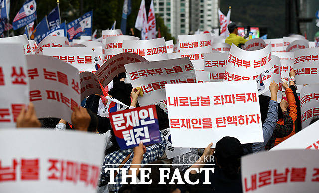 [더팩트ㅣ이효균 기자] 우리공화당이 5일 오후 서울 서초동 서울성모병원 일대에서 조국 법무부 장관을 규탄하는 148차 태극기 집회을 열고 있다.