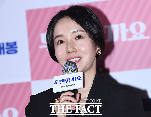 배우 이정현이 8일 오후 서울 용산구 CGV 용산아이파크몰에서 열린 영화 '두번할까요'의 언론시사회에 참석해 포즈를 취하고 있다. /이동률 기자 |