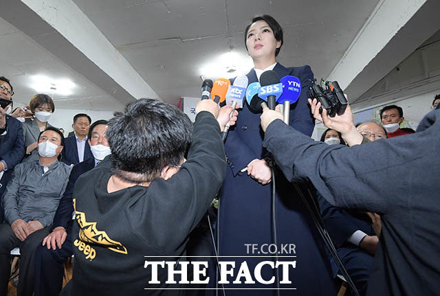 [더팩트ㅣ김세정 기자] 제21대 국회의원 선거에서 서울 송파을에 출마해 당선이 확실시 된 배현진 미래통합당 후보(가운데)가 16일 오전 서울 송파구 잠실동 선거사무소에서 당선 세리머니를 하고 있다.
