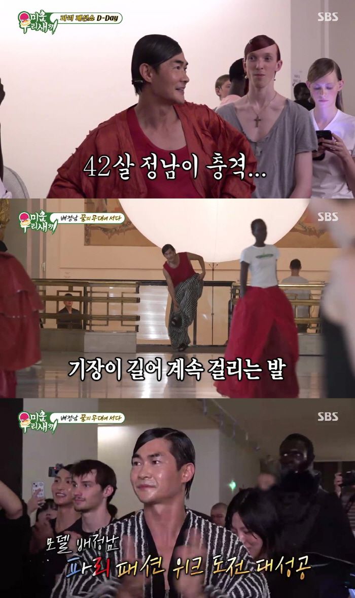 이날 방송에서는 배정남이 파리 패션쇼에 처음으로 도전하는 모습으로 화제를 모았다. 배정남은 이상민과 함께 파리에 도착해 헤어스타일부터 왁싱까지 철저히 준비했지만, 리허설에서 동선이 꼬이고 긴 바지를 계속 밟으며 크게 당황했다. 심지어 후배 모델이 그의 나이를 '50살'로 오해하는 굴욕까지 당했다. 그러나 배정남은 본 쇼에서 긴장감을 극복하고 자신감 넘치는 눈빛과 능숙한 워킹을 선보이며 무대를 성공적으로 마쳤고, 어머니들은 그의 프로다운 면모에 박수를 보내며 감탄을 자아냈다.