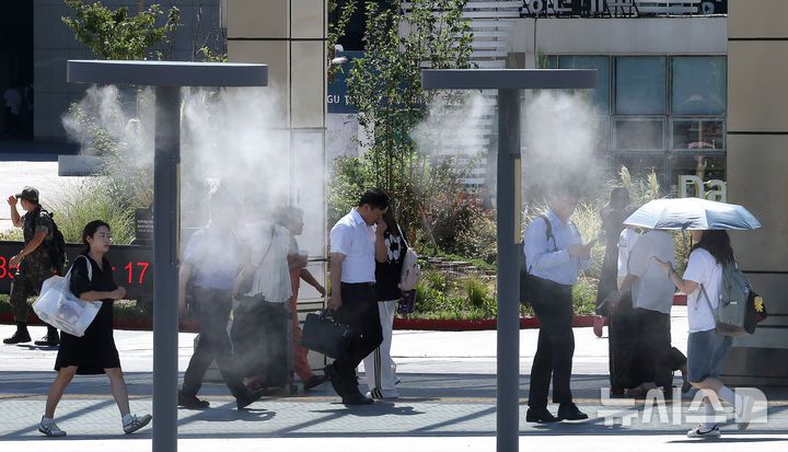[대구=뉴시스] 이무열 기자 = 폭염이 연일 계속되고 있는 29일 대구 동구 동대구역 광장에 더위를 식혀주는 쿨링포그가 나오고 있다. 2025.07.29. lmy@newsis.com |