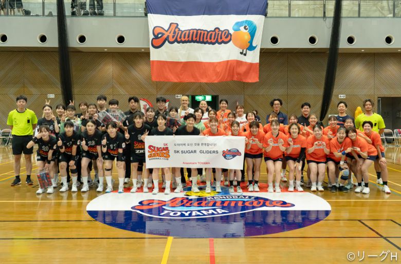 특히 지난 1일에는 일본핸드볼연맹 나카무라 카즈야 대표이사 겸 후코쿠 허니비 단장, 도야마현 이미즈시 나츠노 모토시 시장, 한국핸드볼연맹 박종혁 이사 겸 SK슈가글라이더즈 단장이 양국 연맹 간 협약에 따른 첫 번째 교류 사업의 축하 행사를 진행했다. 친선경기 전에는 일본핸드볼연맹 카즈야 대표이사와 박종혁 이사가 축하 연설을 진행하며 양국 핸드볼 교류의 새로운 시작을 알렸다.