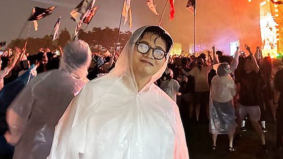사진 속 한 전 대표는 잔디밭에 앉아 공연을 즐기거나 우비를 입고 비를 맞으며 관중석에 미소를 짓고 있다.