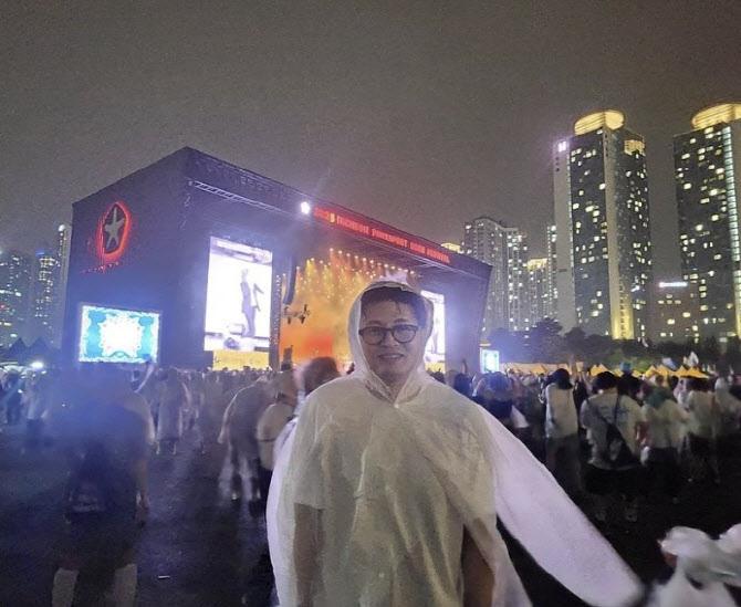 함께 공개된 사진 속 한 전 대표는 비닐 우비를 입고 관객들 사이에서 환하게 미소 짓고 있다. 특히 습기로 김이 서린 안경과 흥겨운 표정이 눈길을 끈다. 또 다른 사진에는 관객들과 함께 잔디밭에 앉아 다리를 뻗고 공연을 관람하는 모습도 담겼다.