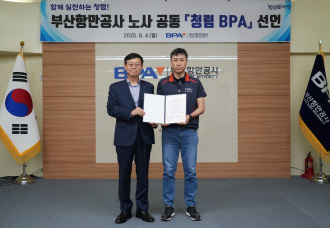 이날 선언식에서 BPA 노사는 함께 투명하고 공정한 업무환경을 조성하고 청렴으로 상생하는 조직문화를 구현하기 위한 실천 의지와 협력을 약속했다.
