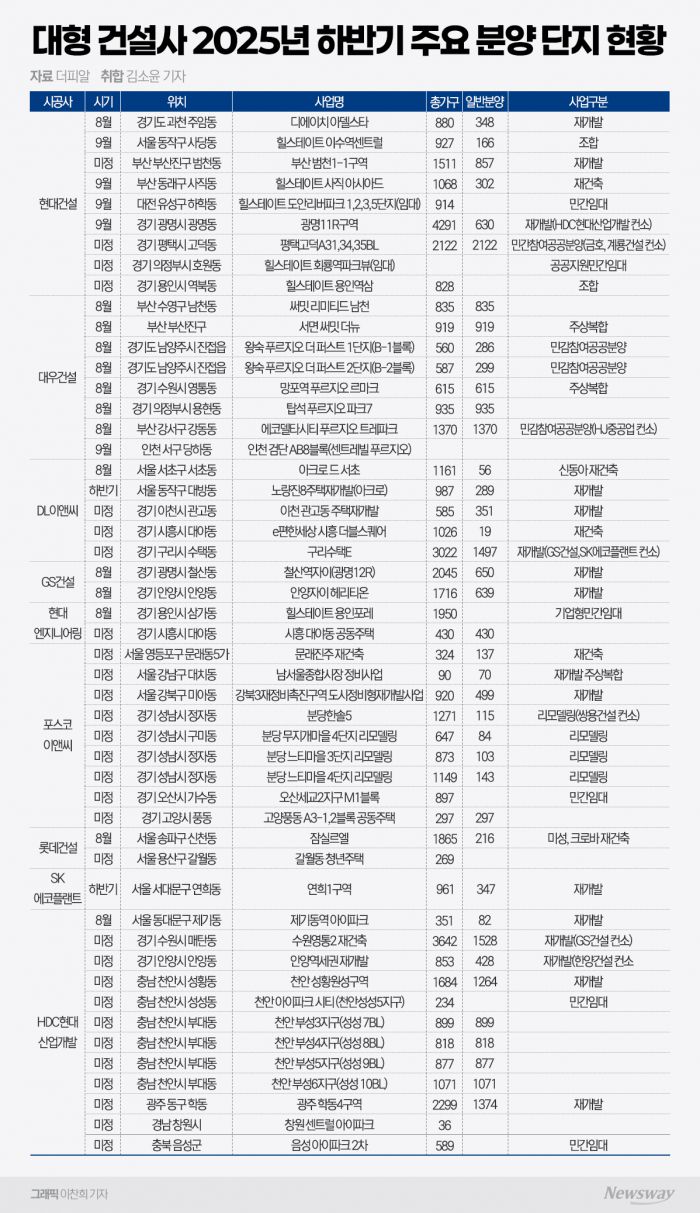 상반기엔 다소 조심스러웠던 대형 건설사들이 하반기부터는 서울·수도권을 중심으로 본격적인 분양 공세에 나선다. 특히 전통적인 '노른자 입지'에 대형 브랜드 단지를 집중적으로 투입하면서 분위기 반전에 나서는 모습이다. 대출 규제 등 정책 부담이 여전하지만, 주택사업 비중이 높은 건설사일수록 공급 실적이 곧 수익과 직결되는 만큼 핵심 입지를 중심으로 승부수를 던지는 양상이다.