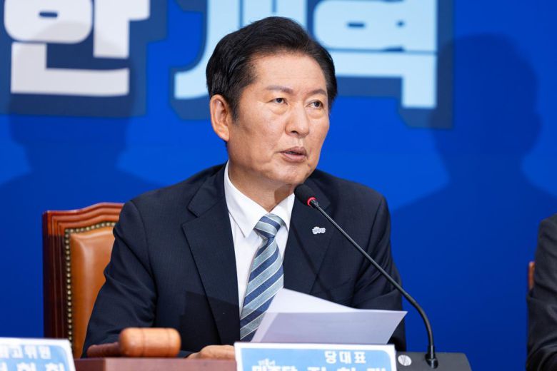 정청래 더불어민주당 대표가 4일 서울 여의도 국회에서 열린 최고위원회의에서 모두 발언을 하고 있다. 2025.8.4/뉴스1