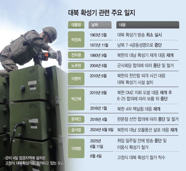 대북확성기 방송은 지난해 6월 윤석열 정부가 북한의 오물풍선 살포에 대응해 전면 재개했다. 윤 정부는 남북 간의 상호 신뢰가 회복될 때까지 9·19 군사합의 전부효력정지를 결정했는데 그 후속조치로 대북확성기 방송을 선택했다.