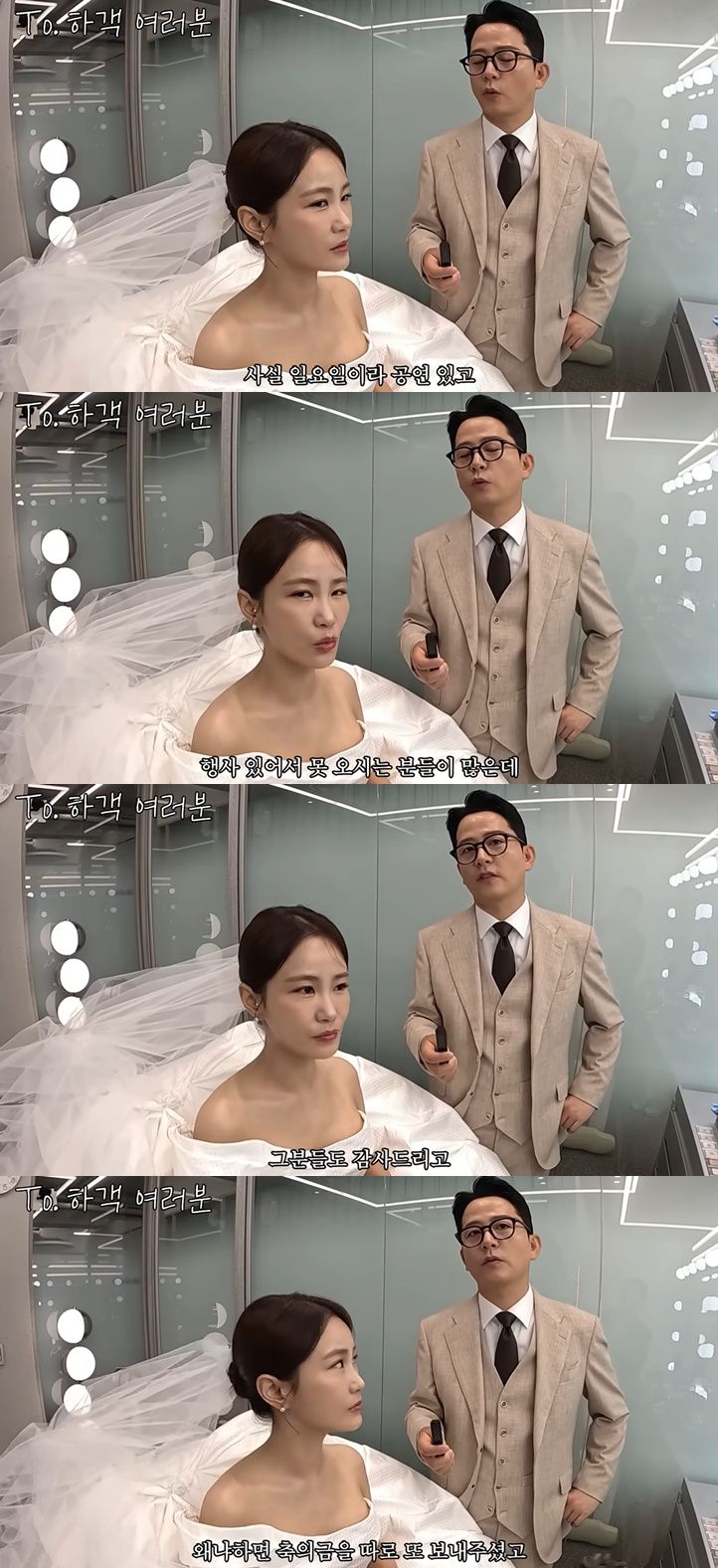 같은 날 공개된 유튜브 채널 '준호 지민'에서 김준호는 "일요일이라 공연 있고 행사 있어서 못 오시는 분들이 많은데 그분들도 감사드린다. 축의금을 따로 보내주셨다"고 밝혔다.