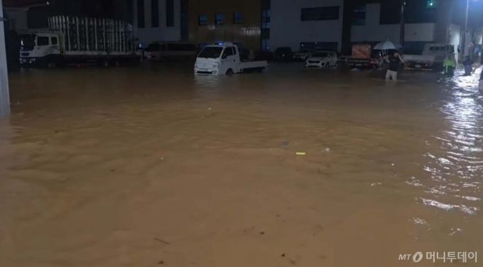 [무안=뉴시스] 변재훈 기자 = 시간당 140.8㎜ 이상 극한 호우가 쏟아진 3일 전남 무안군 무안읍 일대가 침수되고 있다. (사진=독자 제공) 2025.08.03. photo@newsis.com *재판매 및 DB 금지 /사진=