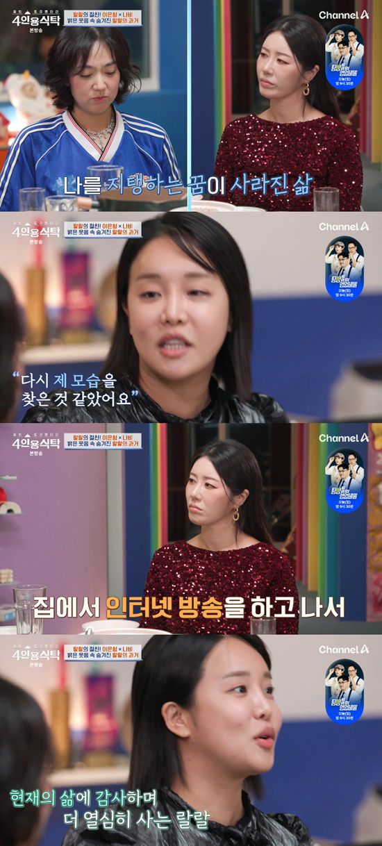 4일 방송된 채널A ‘절친 토큐멘터리 – 4인용식탁’에는 랄랄이 절친 개그우먼 이은형, 가수 나비를 자신의 아지트 ‘랄랄랜드’로 초대했다.