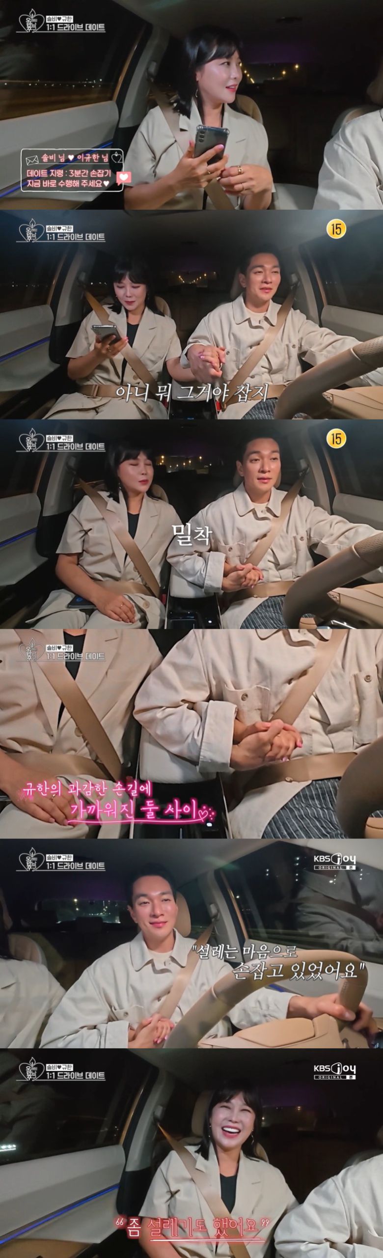 이날 첫인상 투표에서 서로를 선택한 이규한과 솔비는 드라이브 데이트 도중 3분간 손잡기라는 지령을 받았다.