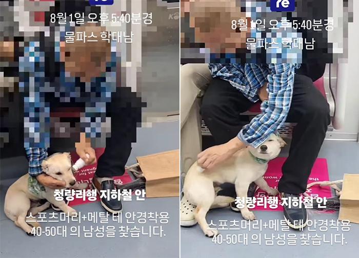 제보자는 “40~50대로 보이는 남성이 중형 믹스견을 데리고 열차에 탔다”며 “개의 목에는 용도를 알 수 없는 두꺼운 비닐이 칭칭 감겨 있었고, 남성은 주머니에서 꺼낸 물파스를 개의 온몸에 바르기 시작했다”고 전했다.