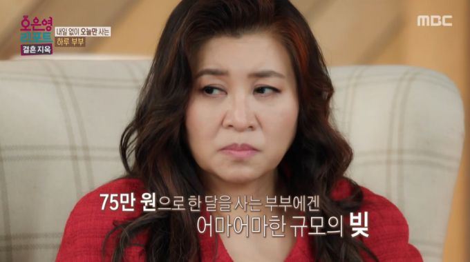 5500만원대 빚이 있는 상황 속, 월 75만원 기초수급비로만 생활하는 부부가 경제 관념 없이 소비하는 모습이 공개됐다./사진=MBC '오은영 리포트'-결혼 지옥' 방송 화면