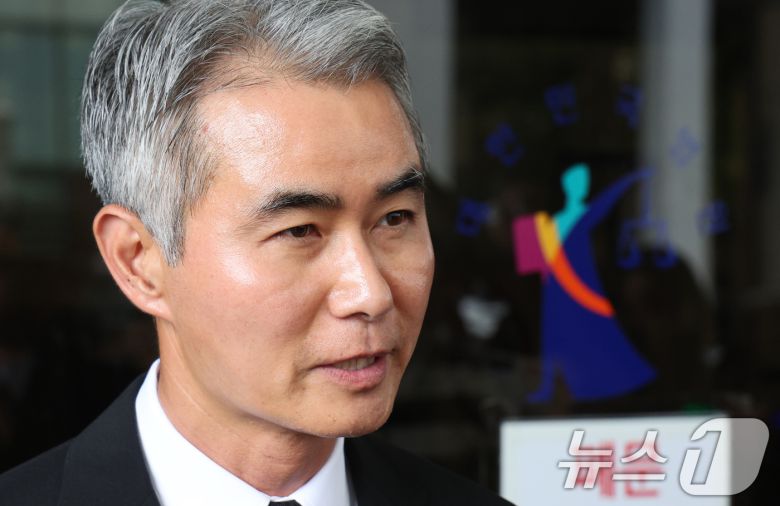 암호화폐 '위믹스'(WEMIX) 유통량 조작 의혹 혐의로 불구속기소 된 장현국 전 위메이드 대표이사가 15일 오후 서울 양천구 서울남부지법에서 열린 자본시장법 위반 1심 선고에서 무죄를 선고받은 후 취재진의 질의에 답변하고 있다. 2025.7.15/뉴스1 ⓒ News1 신웅수 기자 |