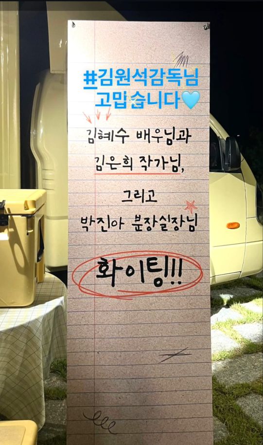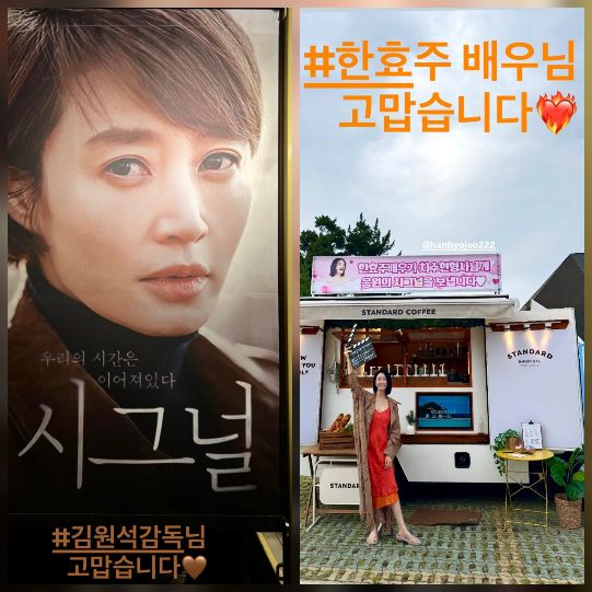 4일 김혜수는 자신의 SNS에 “한효주 배우님 고맙습니다”, “김원석 감독님 고맙습니다”라는 짧은 감사 인사와 함께 촬영 현장에서 받은 커피차 사진 여러 장을 공개했다.