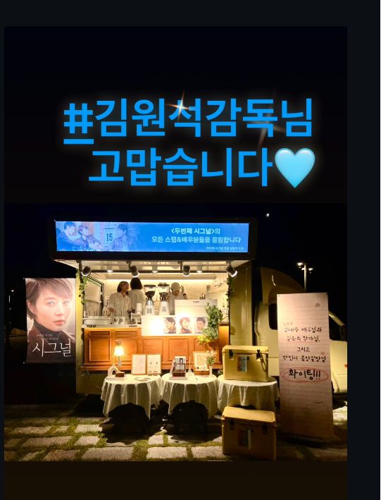 공개된 사진에는 tvN 드라마 ‘두 번째 시그널’ 현장에 낮과 밤, 두 차례나 도착한 커피차가 담겨 있었다.
