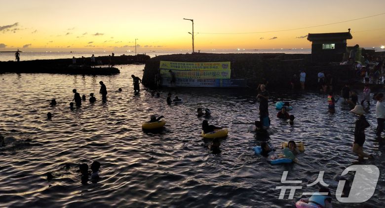 연일 폭염과 열대야가 반복되고 있는 31일 오후 제주시 삼양동 용천수 노천탕인 샛도리물에서 도민들이 더위를 쫓고 있다. 2024.7.31/뉴스1 ⓒ News1 오현지 기자