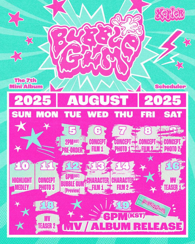 스케줄러에는 8월 6일부터 9일까지 콘셉트 필름과 포토들을 순차적으로 공개하며, 8월 10일에는 하이라이트 메들리를 선보인다. 이외에도 프리뷰, 캐릭터 필름, 'BUBBLE GUM(버블 검)' 뮤직비디오, 앨범 발매까지 케플러(Kep1er)의 컴백 일정이 가득 담겨 있다. 특히 콘셉트 포토부터 필름 공개 스케줄이 빼곡하게 담겨 멤버들의 비주얼 업그레이드에 기대감이 증폭되고 있다.