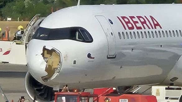 스페인 마드리드에서 출발한 여객기가 이륙 직후 새와 충돌해 기체가 앞부분이 파손된 상태로 긴급 회항하는 사고가 발생했습니다.