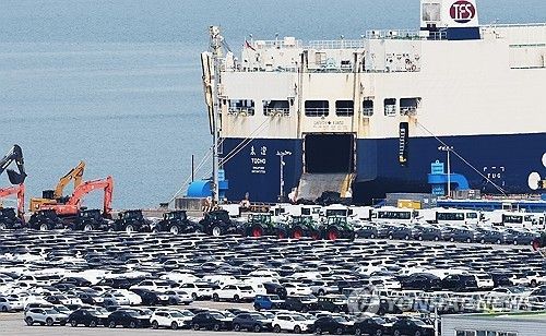경기도 평택항에서 선적 대기 중인 해외 수출용 차량들. <사진=연합뉴스> |