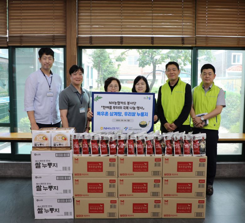 이민경 NH농협카드 사장과 봉사단은 복지관을 찾아 어르신들의 건강한 여름나기를 위한 삼계탕과 우리쌀 누룽지 등을 전달했다. 후원물품은 NH농협카드 임직원의 자발적인 참여로 이뤄진 봉사단의 적립기금으로 마련됐다.