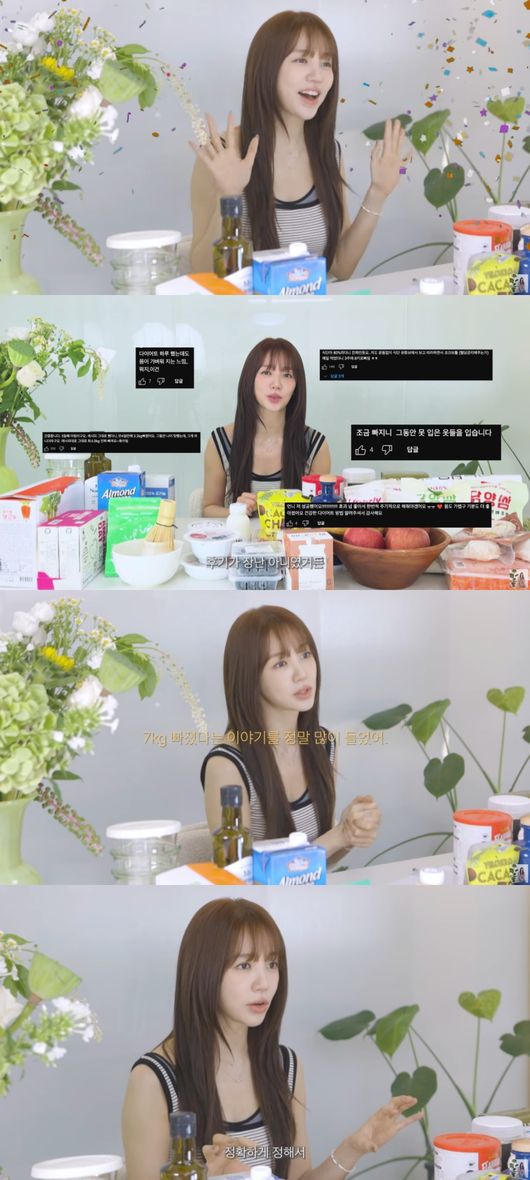 영상 속 윤은혜는 "주변에 친한 사람부터 안 친한 사람들까지 후기가 장난 아니었다. 진짜로 스케줄대로 했다는 사람은 7kg 빠졌다는 이야기를 정말 많이 들었다"라며 자신의 다이어트 비결에 자부심을 드러냈다.
