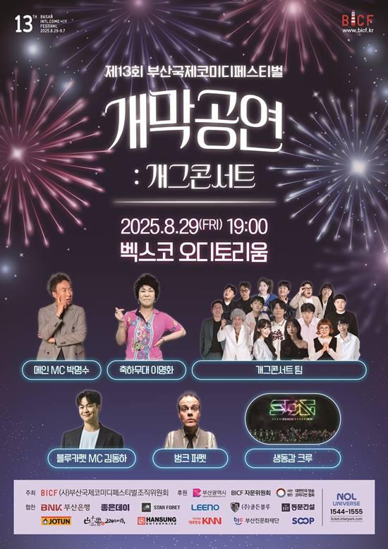 제13회 ‘부코페’ 개막공연은 장소를 야외에서 실내로 옮겨, 더욱 쾌적하고 몰입감 있는 공연 환경을 제공한다. 벡스코 오디토리움에서 펼쳐지는 이번 개막공연은 스케일과 완성도를 한층 끌어올리며, 명실상부한 ‘세계적인 코미디 페스티벌’의 위상을 입증할 것으로 기대를 모은다.