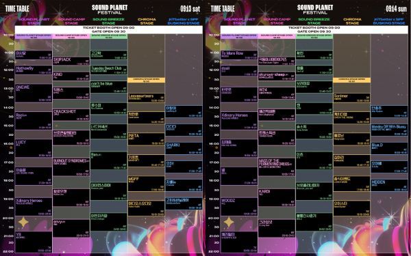 5일 공개된 ‘사운드플래닛페스티벌 2025’의 타임테이블 중 사운드 플래닛 스테이지는 롤링홀의 4년째를 맞은 신인 뮤지션 발굴프로젝트 ‘CMYK 2025’의 TOP 2를 차지한 아사달과 투모로우가 각각 오프닝을 맡고 롤링홀과 오랜 시간 호흡을 맞춰온 YB와 체리필터가 대미를 장식한다.
