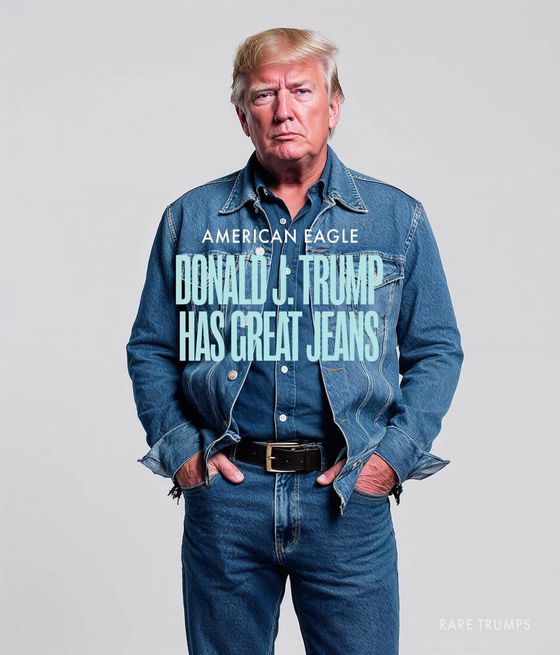 소셜미디어(SNS)에선 트럼프 대통령을 아메리칸 이글의 청바지 모델로 합성한 인공지능(AI) 제작 이미지가 확산하고 있다. 사진 트루스소셜 캡처 |