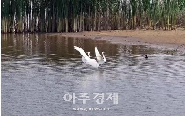 물위를 스치듯 날아오르며 퍼덕이는 날갯짓은 연잎 위 이슬을 꽃잎으로 튕겨 보내고, 놀란 꿀벌이 허겁지겁 날아간다. 얕은 물가에서는 백로들이 긴 부리로 물고기를 낚아채며 생태계의 활기를 보여준다.
