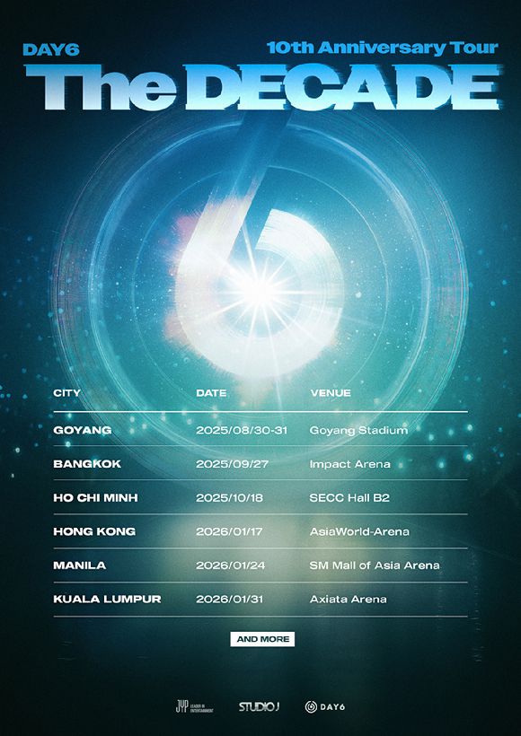 공개된 포스터에 따르면 DAY6는 8월 30일~31일 양일간 고양을 시작으로 9월 27일(이하 현지시간) 방콕, 10월 18일 호찌민, 2026년 1월 17일 홍콩, 24일 마닐라, 31일 쿠알라룸푸르 등지에서 데뷔 10주년 기념 단독 콘서트를 열고 My Day(팬덤명: 마이데이)와 만난다. 여기에 'AND MORE'라는 문구가 더해져 개최지 추가 발표에 대한 관심이 집중됐다.