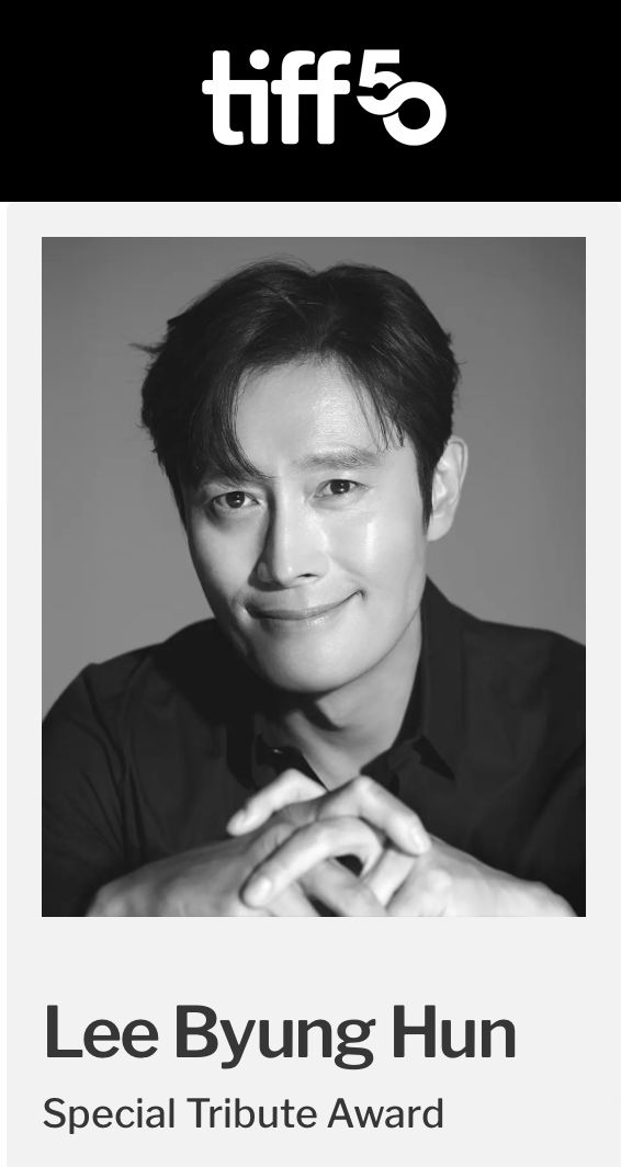 [Dispatch=유하늘기자] 배우 이병헌이 제50회 토론토국제영화제(TIFF) 특별공로상을 수상한다. 영화 '어쩔수가없다'(감독 박찬욱)도 공식 초청됐다.
