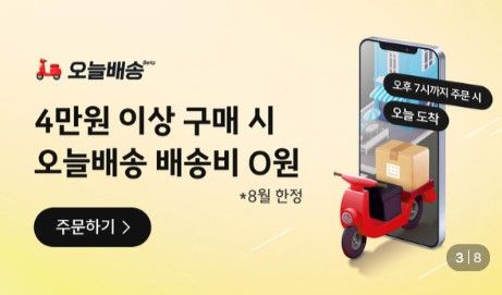지난 4월부터 서울 강남·서초·송파구 등 일부 지역에서 도입된 '오늘배송'은 5월 말까지 배송비 무료 혜택을 거쳐 현재 유료로 전환됐다. 결제 금액이 4만 원 미만일 경우 배송비 5000원이 부과되며, 결제액 4만 원이 넘어가면 무료로 배송받을 수 있다. 반품은 가능하지만 교환은 불가하다.
