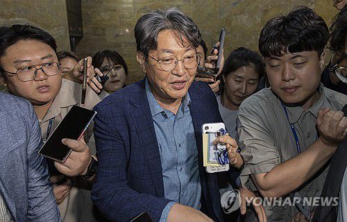 취재진 질문받는 이춘석 국회 법사위원장 |
