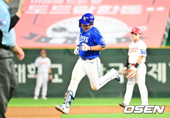 [OSEN=문학,박준형 기자] 5일 오후 인천 문학 SSG 랜더스 필드에서 ‘2025 신한 SOL BANK KBO리그’ SSG 랜더스와 삼성 라이온즈의 경기가 진행됐다. 이날 SSG은 문승원을, 삼성은 최원태를 선발투수로 내세웠다. 4회초 2사 삼성 김영웅이 솔로홈런을 날린뒤 베이스를 돌고 있다. 2025.08.05 / soul1014@osen.co.kr 이 기사의 카테고리는 언론사의 분류를 따릅니다.0공유하기