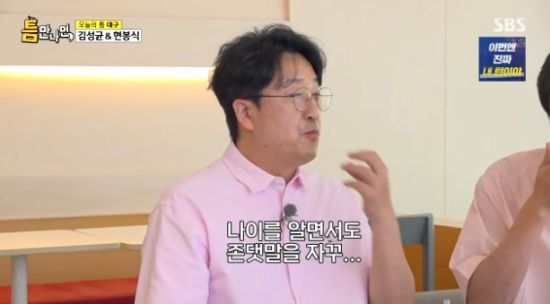 5일 방송된 SBS 예능 프로그램 '틈만나면'에서는 '틈 친구'로 배우 김성균과 현봉식이 출연해 대구를 찾아 '틈 주인'에게 특별한 시간을 선물했다.
