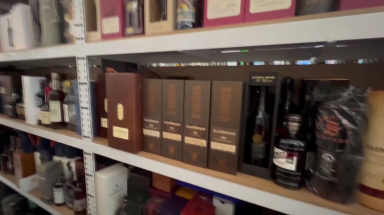 선반을 가득 채운 고급 위스키.