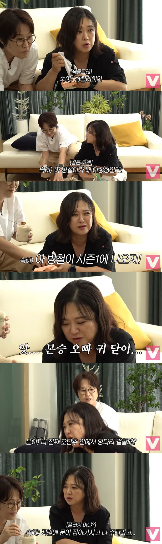 그러자 송은이는 "너 진짜 '오만추 안에서 양다리 걸칠래?"라고 말했고, 김숙은 "병철이가 쟤 나한테 마음 있나 보더라"고 말해 눈길을 끌었다.