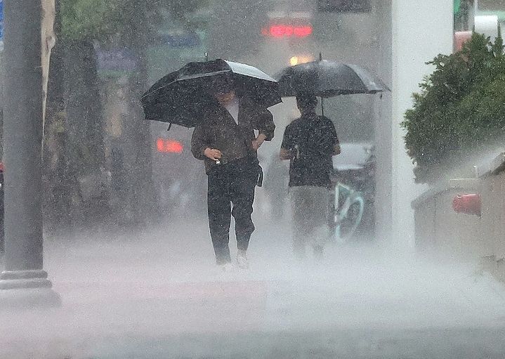 오전부터 오후 사이에는 시간당 30㎜, 밤부터 7일 새벽 사이에는 시간당 30~50㎜ 안팎의 집중호우가 쏟아질 것으로 보여 주의가 필요하다.